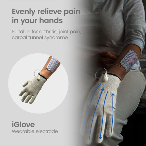 iGlove veikia panašiai kaip elektrodų pagalvėlė, tačiau apima visą ranką, todėl užtikrina efektyvesnį gydymą esant rankų skausmui, artritui ir kitoms būklėms. Pirštinė perduoda impulsus iš TENS arba EMS aparato per sidabriniais siūlais praturtintą audinį, stimuliuoja nervų galūnes, mažina tinimą, padeda atpalaiduoti raumenis ir gerina jų funkciją. Šiam produktui reikalingas TENS arba EMS aparatas.